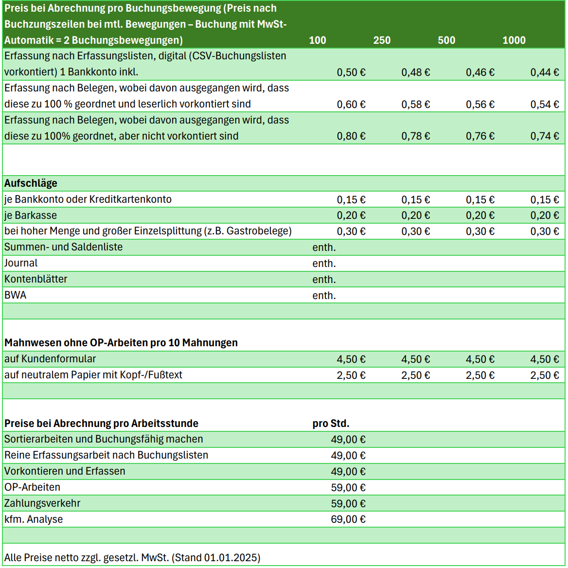Diese Vorgehensweise stellt sicher, dass der Preis fair, transparent und leistungsgerecht bleibt – sowohl für dich als Mandanten als auch für uns als Dienstleister.